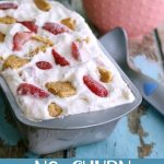 - Spoon the cream mixture into a 4 1/2- by 8 1/2-inch loaf pan or 1 1/2-quart freezer-safe container. Sprinkle the reserved strawberries and graham crackers on top. Freeze until set, at least 4 hours.