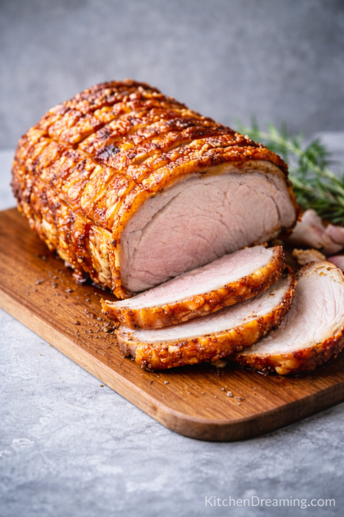 Unlike pork shoulder, pork loin is leaner. That means proper temperature control is essential. When cooked correctly, you get a crispy pork loin roast with beautifully sliced, juicy meat underneath.
