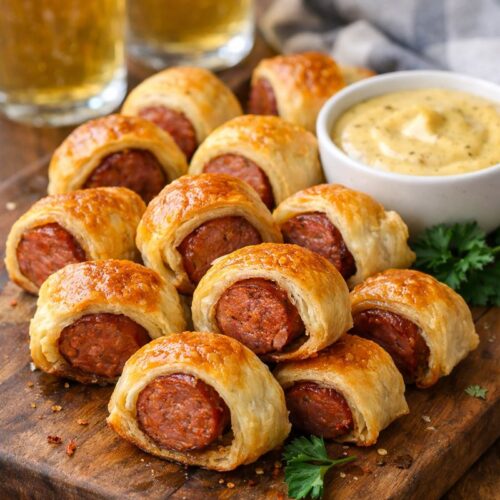 This recipe can easily be doubled with two (1 lb) packages of Andouille Sausage links to every one package (two sheets) of frozen puff pastry.Nutrition is calculated based on the recipe as written. Additions, omissions, or substitutions will change the calculated values shown. The addition, omission, or substitution of ingredients will alter the nutritional information shown. Nutrition percentages are based on a 2000-calorie diet. The FDA recommends 80 micrograms of vitamin K.