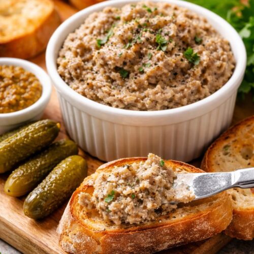 Serve on crackers as a snack, crostini for a great appetizer, toast points for a hearty breakfast, or with mustard as a sandwich for lunch.This also makes great camping food since it is so versatile. Prepared ahead of time, it would make a lovely addition to the other chilled foods in your cooler.If using salted chicken stock, be sure to adjust the amount of salt added to the meat.