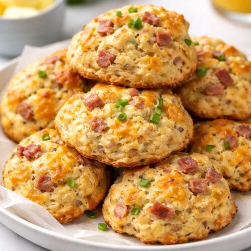 Serving Suggestions: Breakfast - These ham and cheese scones make a great breakfast on the go. For this, we typically bake them the night before for a quick morning breakfast on the way to the office or road trip.Brunch - Serve warm on a brunch buffet. Lunch - Serve warm with a tossed salad.Snacks - These make a great mid-morning or afternoon snack or pick-me-up.Appetizer - Prepare smaller 2 oz biscuits for a sun appetizer. Serve warm with butter. Adjust the baking time to 12-15 minutes.Soup - Serve alongside Baked Potato Soup or Chicken Soup, or Clam chowder for a hearty meal.