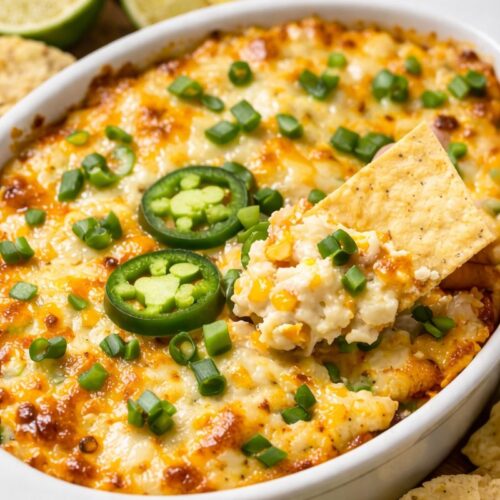 This Hot Jalapeño Corn Dip is packed with flavor starting with the fresh, steamed corn and then combined with chopped cilantro, diced jalapeños, and sliced green onions.