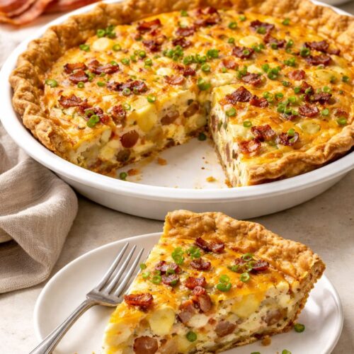 Place pie in preheated oven, bake for 30 to 45 minutes or until eggs are set and cheese is golden brown.