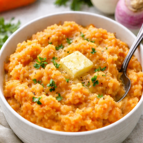 Creamy mashed turnips and carrots made with butter and simple seasonings. A comforting, easy root vegetable mash perfect for holidays or weeknight dinners.