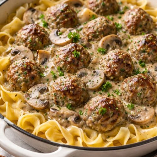 This easy Meatball Stroganoff is scratch-made in an easy-to-prepare sour cream gravy made without using canned soups or frozen meatballs. This family-friendly meal is ready in about 30-minutes! Gluten-Free and Dairy-Free suggestions included on the recipe card.