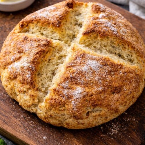 This No Yeast Soda Bread takes only 4 minutes to put together and a quick 30-minute bake in the oven. No proofing is needed! This recipe makes a 1-lb loaf.