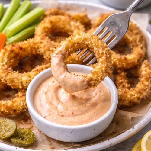 Crispy bread crumb coating and a wet batter come together to make this diner classic. Combined with a tangy sauce, it's the perfect onion ring combination.