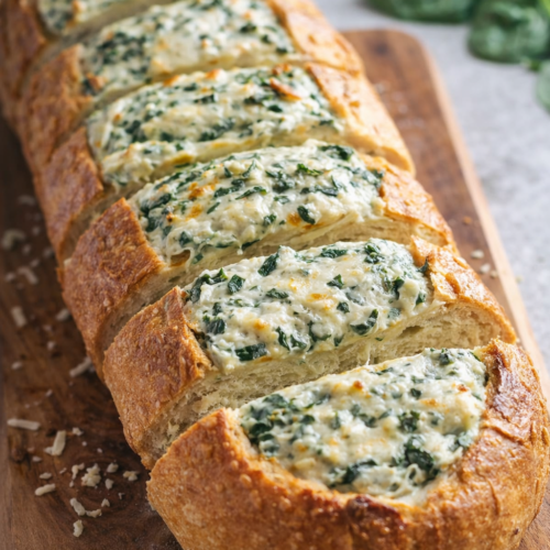 This Spinach Dip Bread Boat recipe combines creamy spinach dip with crusty French bread for a warm, sliceable appetizer. Easy to prepare ahead and perfect for parties, holidays, and game day gatherings.
